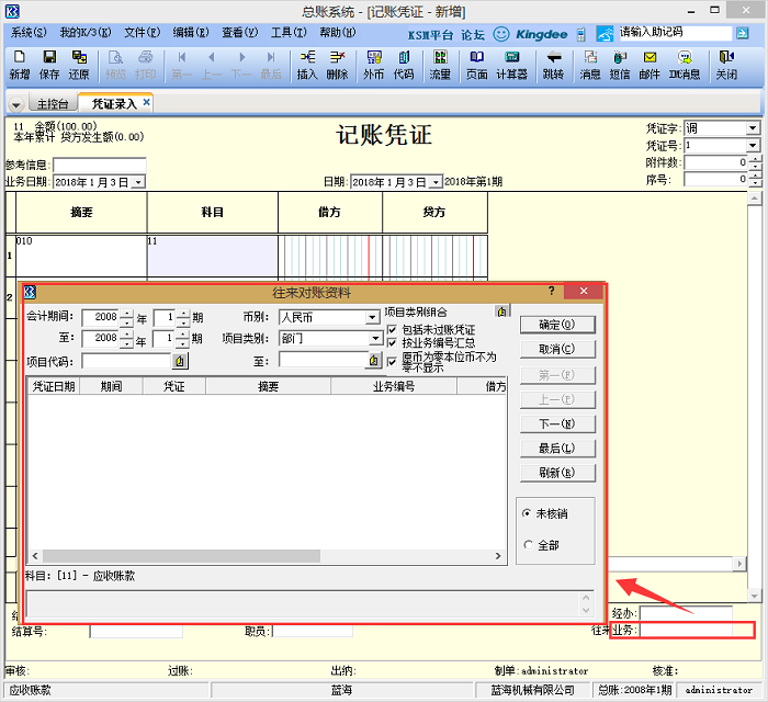 在录入k3软件往来科目凭证时,能否显示该往来科目之前发生的业务?