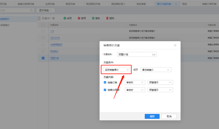 (3)如果没有勾选该参数,该限价方案里取的就是不含税价格