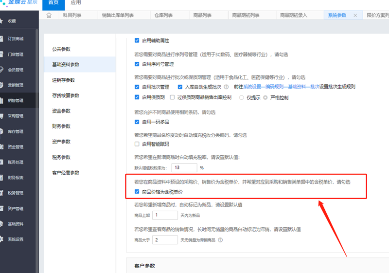 (1)这个是根据系统参数来设置的,如果参数里面勾选了“商品价格为含税单价”,则在录入单据保存审核时该实际销售单价就是取的含税价格