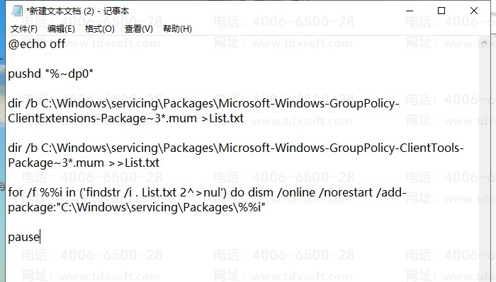 dir /b C:\Windows\servicing\Packages\Microsoft-Windows-GroupPolicy-ClientExtensions-Package~3*.mum >List.txt
