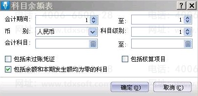 会计科目:输入要输出科目余额表的会计科目范围,选定后系统只将此范围内的会计科目余额输出到余额表中。