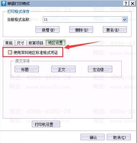 单击[账务处理]-[凭证查询],单击右上角菜单栏[文件]-[打印凭证]-[打印设置],选择页签[地区设置],取消勾选参数“使用深圳地区标准格式凭证”即可。