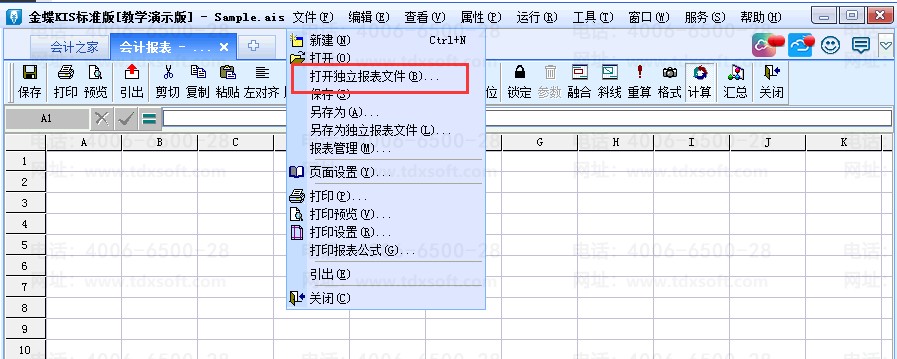 2、打开报表显示为空白的账套-[自定义报表]-[新建]-[打开独立报表文件]将新保存的报表分别设为资产负债表和利润表。