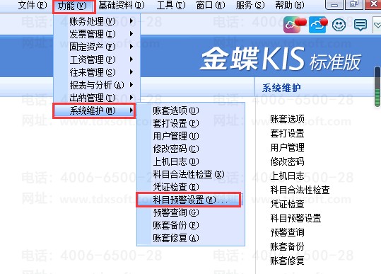 金蝶标准/迷你版如何启用科目预警?