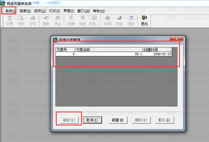 单击菜单[系统]-[报表方案],选择报表方案名后单击[确定]按钮进行报表方案,此时现金流量表系统界面上的功能按钮都是黑色的,可以正常使用。