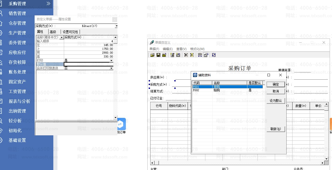 专业版采购订单的采购方式能否默认为空,或者修改其他的默认值?