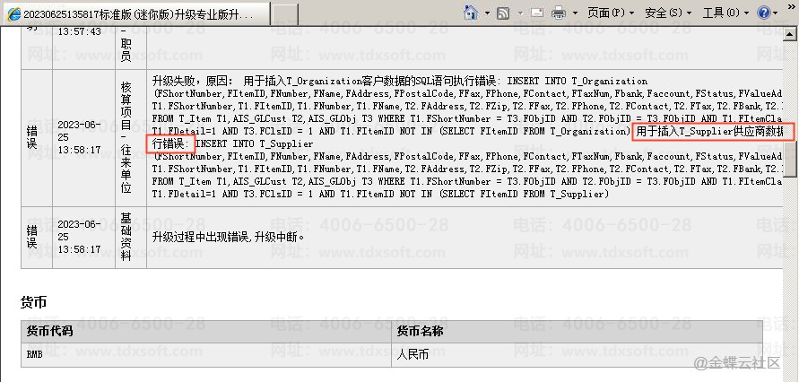 标准版(迷你版)升级专业版提示用于插入T_Supplier供应商数据的SQL语句执行错误,如下图所示: