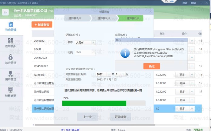 金蝶商贸版建账提示执行脚本错误,kisv60_fieldprecision.sql出错