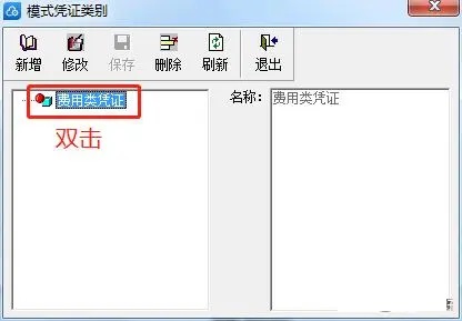 4.【类型】需要新建,点击类型选项框后面的2个点,在弹出的对话框里点击【新增】,在右边【名称】后面填写分类,分类可以写费用类凭证,点击【保存】,再双击左边该新增的分类名字