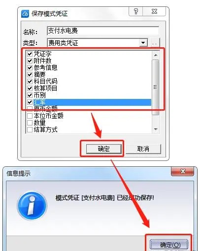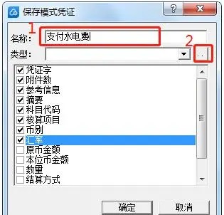 6.下面勾选的参数默认即可,也可以根据实际需要进行勾选,点击【确定】,模式凭证即保存成功;