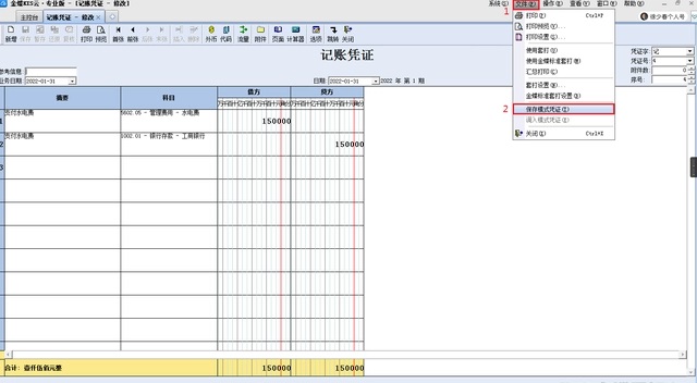 1.登录软件后,进入【账务处理】-【凭证录入】,先录入一笔该业务,并保存该凭证;
