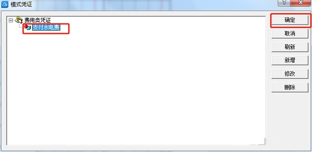 7.下次要做这种凭证,点击【凭证录入】,点击右上角菜单栏中【文件】-【调入模式凭证】,双击【支付水电费】按钮,在完善分录金额即可;