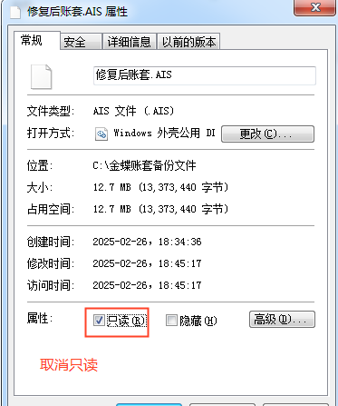 账套AIS文件被只读了导致。