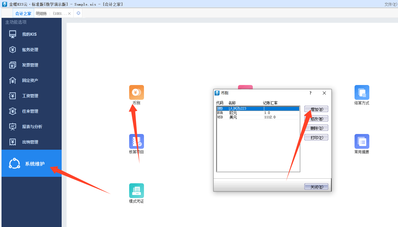 kis标准版财务系列怎么增加币别?