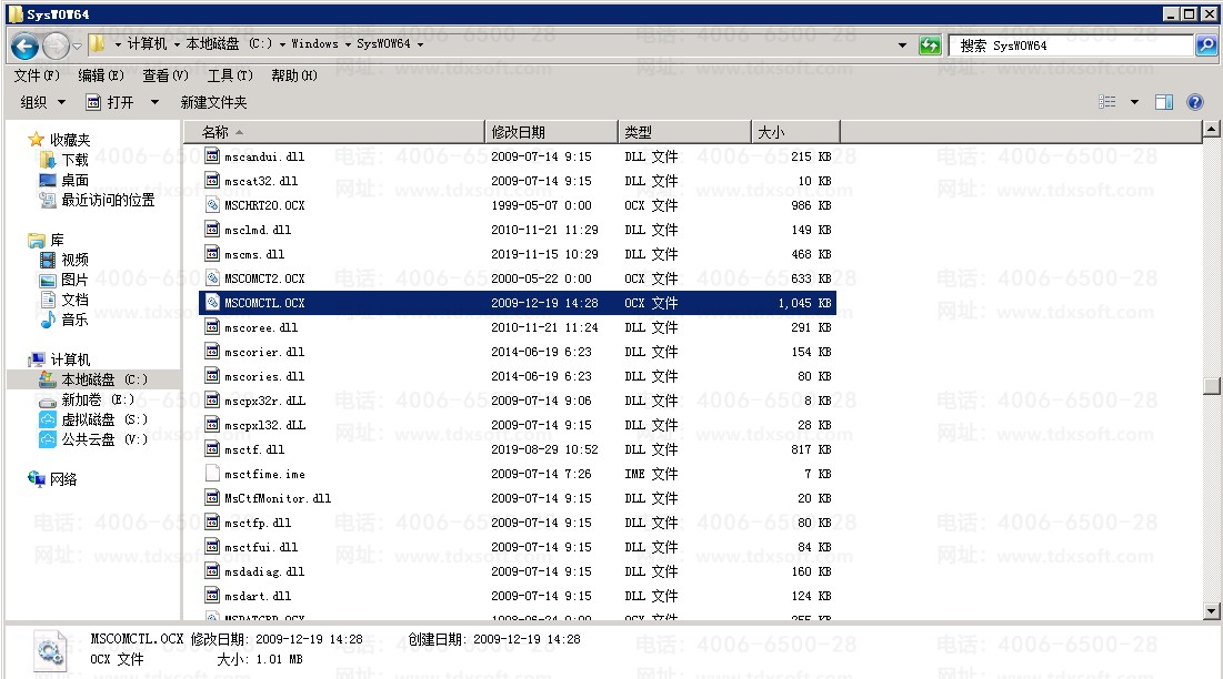 1、从别的正常电脑的C盘Windows目录下搜索组件“MSCOMCTL.OCX”,拷贝到异常电脑对应目录下(不同操作系统的组件目录不一样,一般目录是C:\Windows\SysWOW64或C:\Windows\System32);
