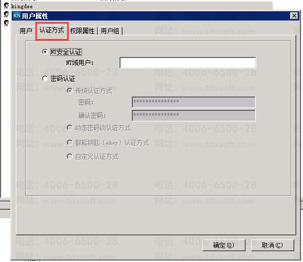 4、勾选第一个“NT安全认证”,输入NT域用户后,点击确定即可;