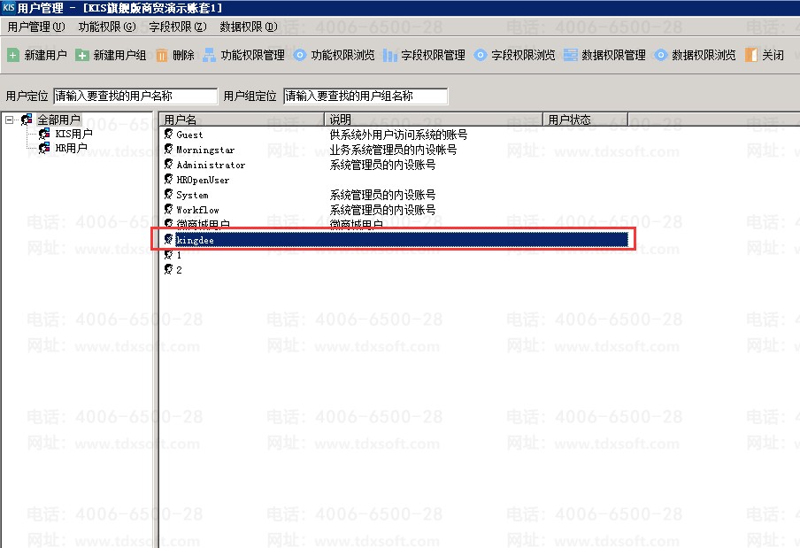 2、点击用户,找到对应的用户;
