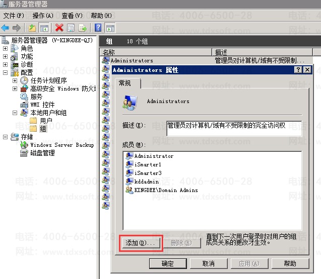 一、将域用户加入Windows管理员权限组,