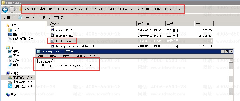 解决方案:在安装目录(:\Program Files (x86)\Kingdee\K3ERP\K3Express\KDSYSTEM\KDCOM\Reference)下,找到配置文件DataKey.ini,通过文本文档打开之后,保留前两行数据,删除后面的所有内容,保存,重新登录使用系统即可。