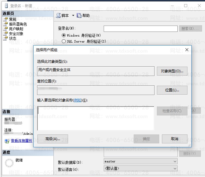 2、原因二:操作系统登录的用户在数据库中没有设置登录名,导致连接数据库的权限不够,无法打开账套管理;