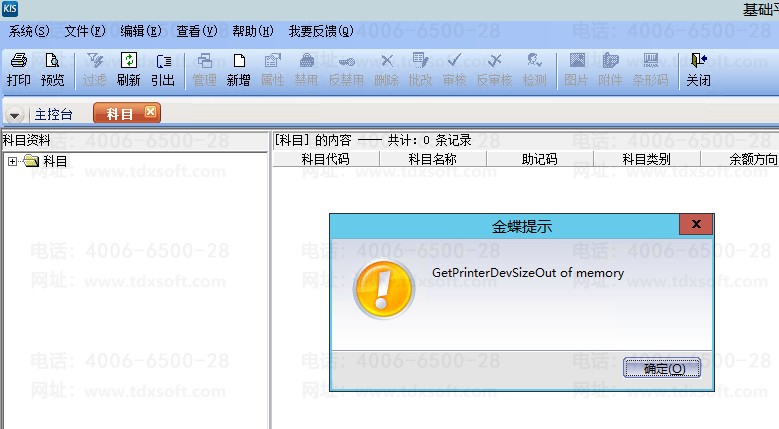金蝶软件提示“GetPrinterDevSizeOut of memory”解决方案