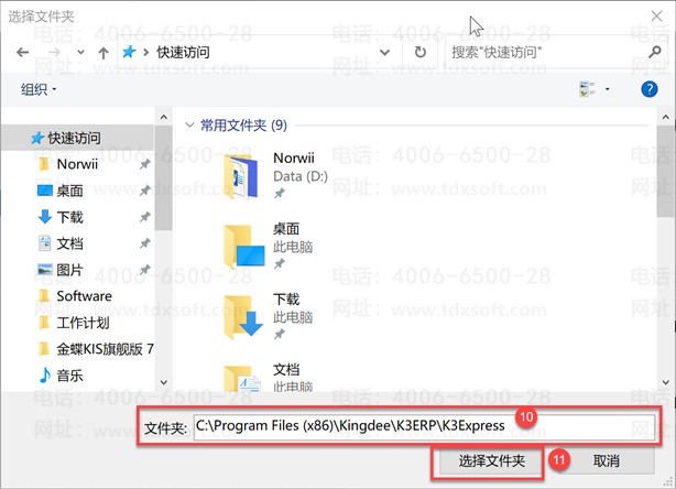 这里面唯一需要输入的是金蝶所在的文件夹,在金蝶客户端, 在64位的Windows 10上是:C:\Program Files (x86)\Kingdee\K3ERP\K3Express