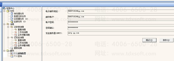 发送服务器:smtp.qq.com或者smtp.163.com电子邮件地址和邮箱账户配置自己的邮箱账套,保存后测试,既可以给配置的邮箱发送邮件,即配置成功。特别注意:这里需要输入的密码并不是登录邮箱的密码,而是开启邮箱SMTP服务的授权码。如何获取邮箱SMTP服务的授权码的授权码?下面已QQ邮箱为例