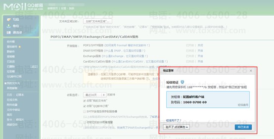 (2)、开启POP3/SMTP服务,会弹出生成授权码的短信验证方式(如果已经开启,点击下方的生成授权码按钮)