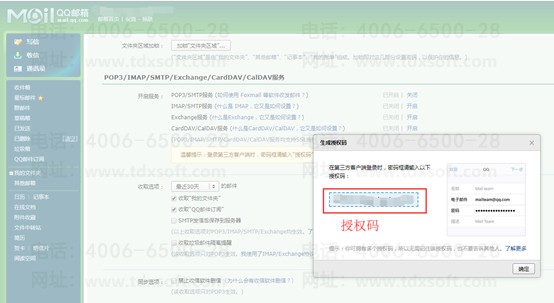 (4)保存好授权码做备用,将授权码复制粘贴到旗舰版中邮件配置的密码中,并保存测试。