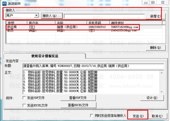 添加接收人信息,打击发送即可以给指定的接收人发送指定的邮件