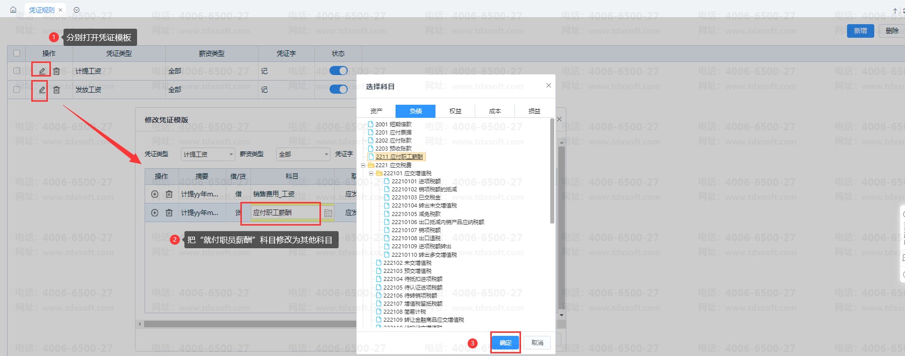步骤一:打开 【工资】-【凭证规则】打开凭证模板的编辑界面