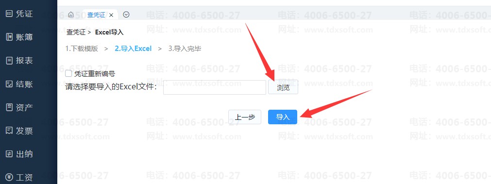 选择中导出的凭证模版,导入的凭证日期默认是2020年,如凭证号需要重新编号,勾选【凭证重新编号】。