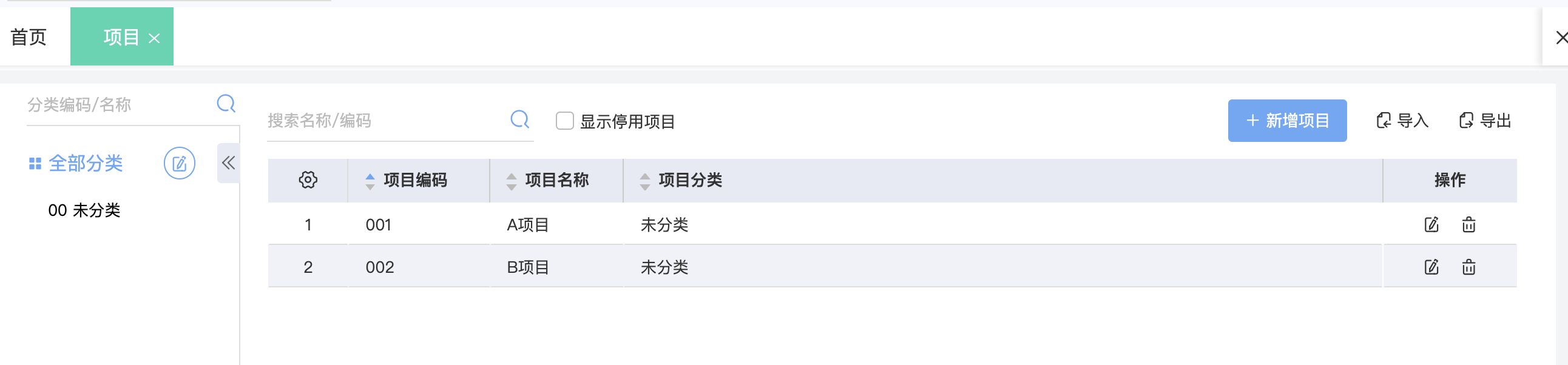 在基础信息-项目中设置所有的研发项目信息,维护对应的项目。