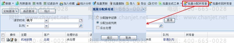 [分配选中l记录]:将选中的人员分配作为服务的所有者。