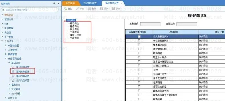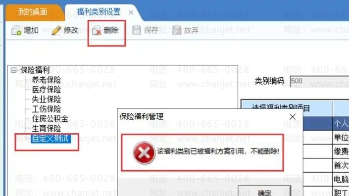 l 不允许删除的类别:系统预制的五险一金;已经有数据(包括福利档案和福利缴交数据)。