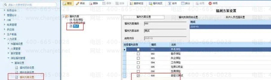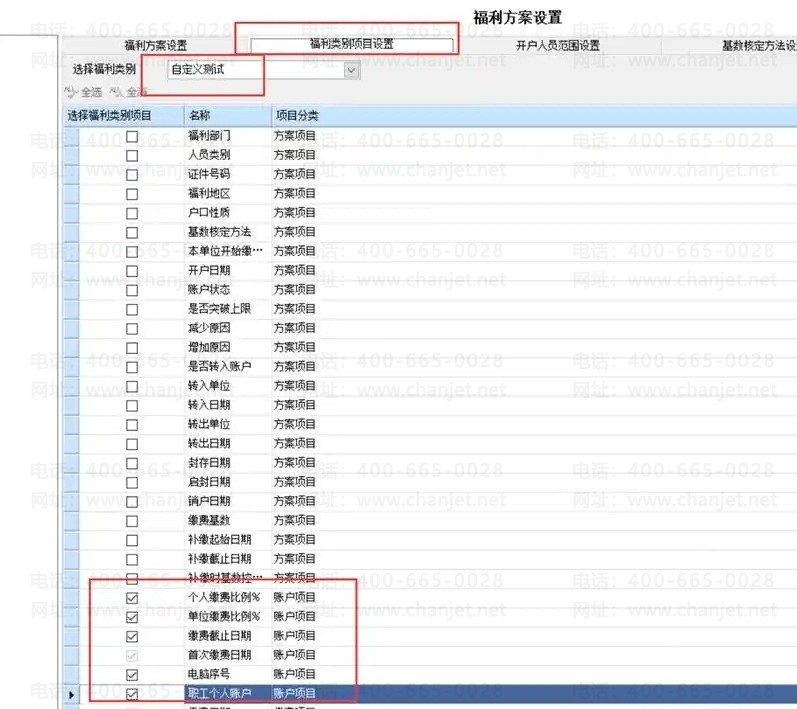 l 福利类别里勾选的福利类别项目,会在福利方案中显示: