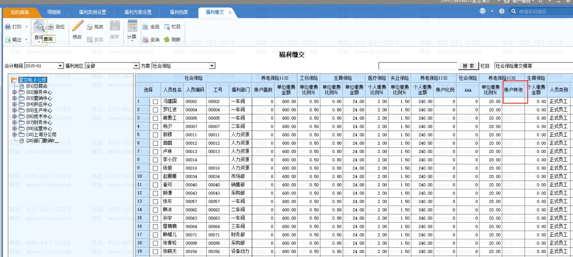 5、其中,账户项目 【账户其他】体现在福利档案、福利缴交内