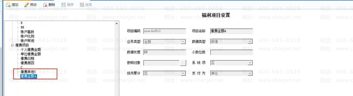增加缴费项目——分别增加【缴费金额A】【缴费其他C】