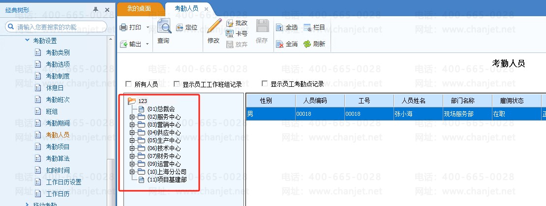 A.产品人事管理启用部门权限,101用户登录后查看人事管理的机构设置,只能看到已授权的三个部门,其它部门没有权限查看。
