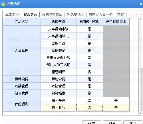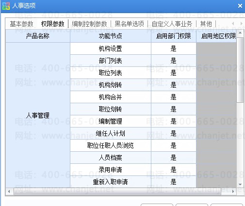 只有在【数据权限控制设置】中启用了部门权限,才能够选择人事各模块功能节点是否启用部门权限,否则为灰色无法编辑。