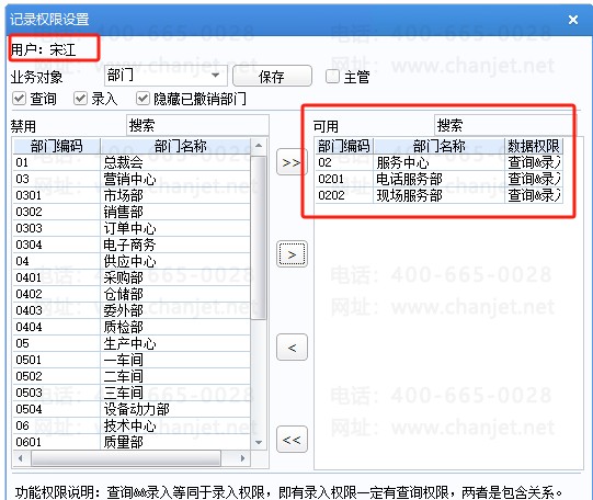 3、以部门权限为例,授权101用户02/0201/0202部门权限,是否启用部门权限的查询效果:
