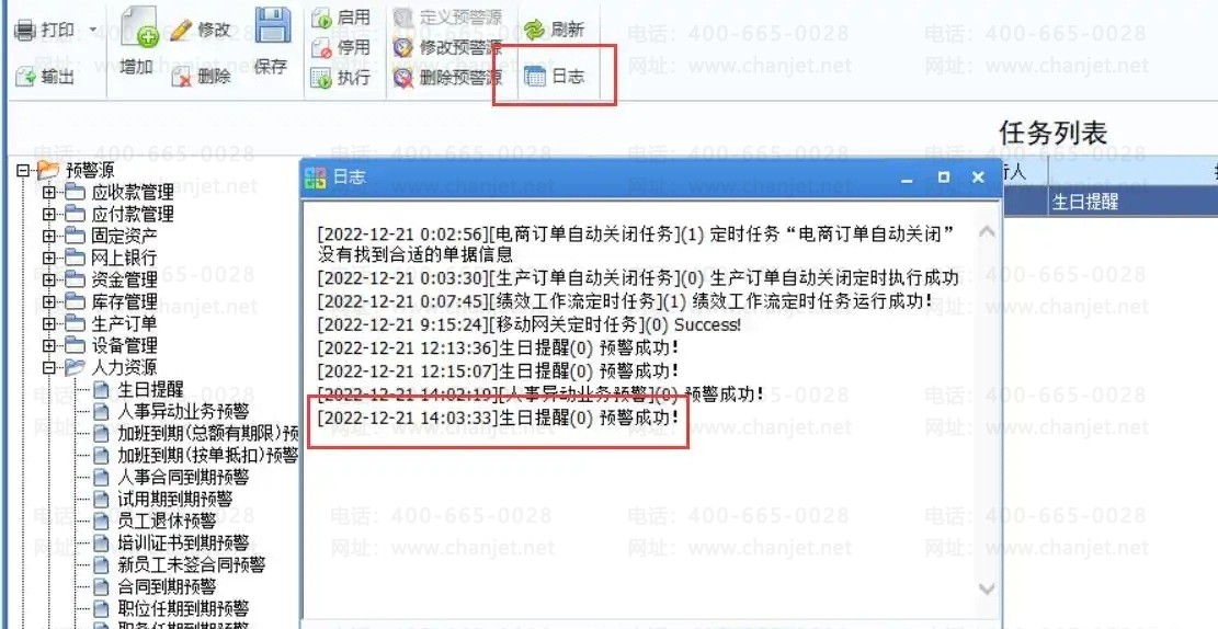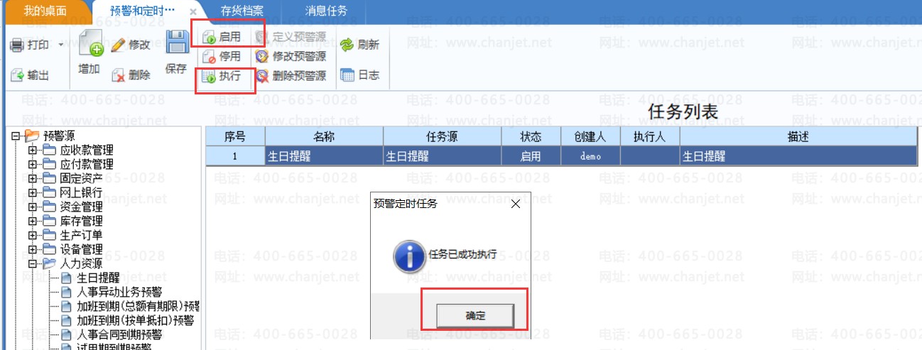 一、基础设置-预警与通知-预警和定时任务中启用并执行预警源