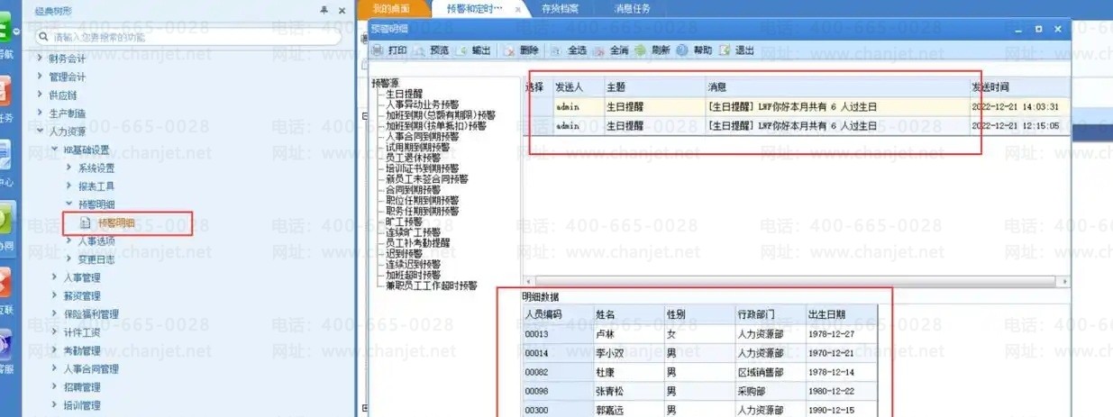 明细数据:显示符合预警条件的人员信息。具体显示的字段是在设置预警时选择的预警明细。