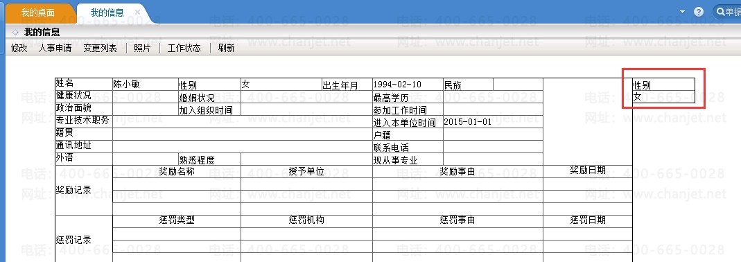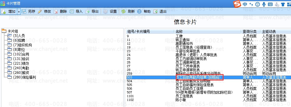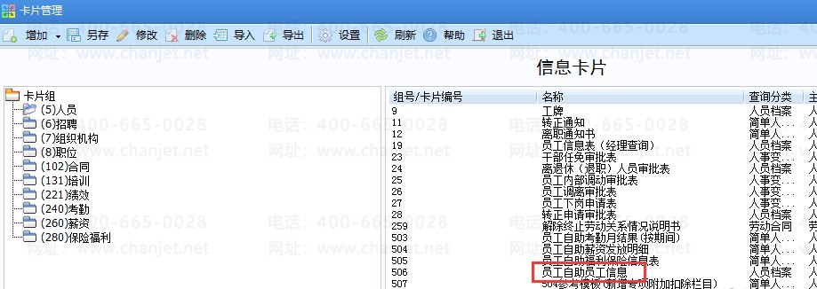 3、 选中对应卡片点击修改,修改后到员工自助中查询信息