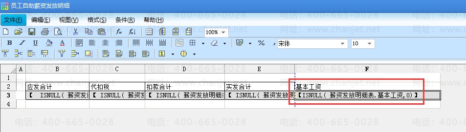 表达式:ISNULL( 薪资发放明细表.基本工资 ,0)