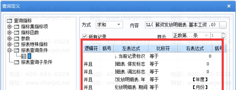 2、录入需要查询的工资项目,点击“条件-单元条件定义”,设置公式