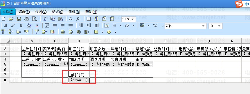 二、考勤统计——503卡片员工自助考勤月结果(按期间)