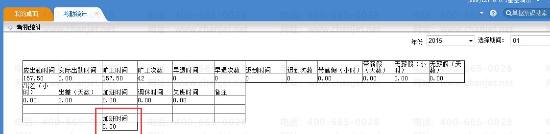 考勤统计——503卡片员工自助考勤月结果(按期间)