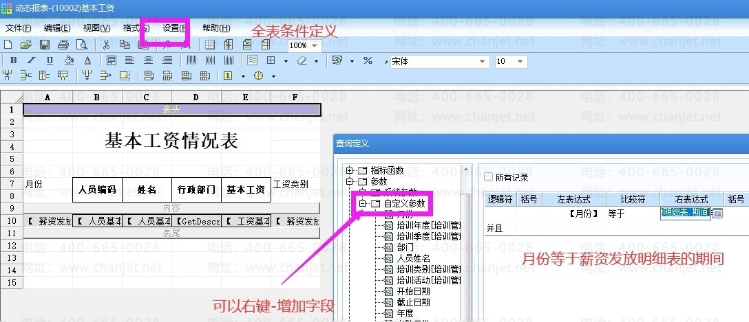 空白报表:新建一个空白的报表,手工设置栏目及条件;