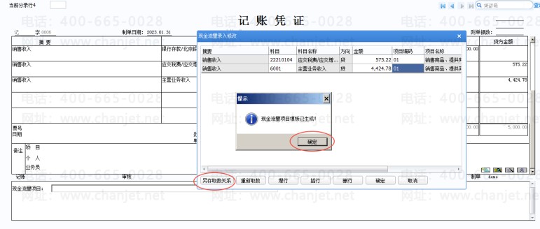 另存取数关系后,下次再做凭证 借方是流量科目 贷方是销项税或主营业务收入时 保存凭证时系统自动带出01这个流量项目,不会再弹窗提示录入了!